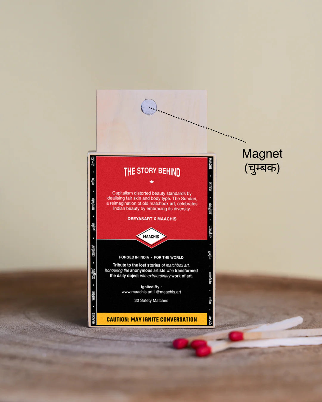 Capitalism distorted beauty standards by idealizing fair skin and specific body types. The Sundari, a reimagining of old matchbox art, celebrates Indian beauty by embracing its diversity.